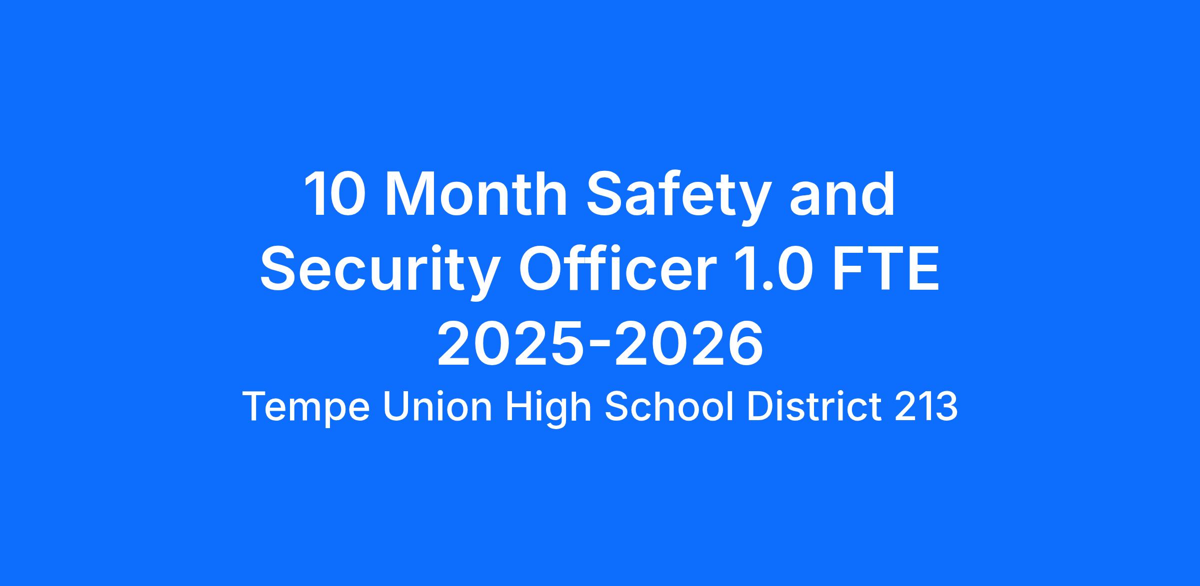 10 Month Safety and Security Officer 1.0 FTE 2025-2026