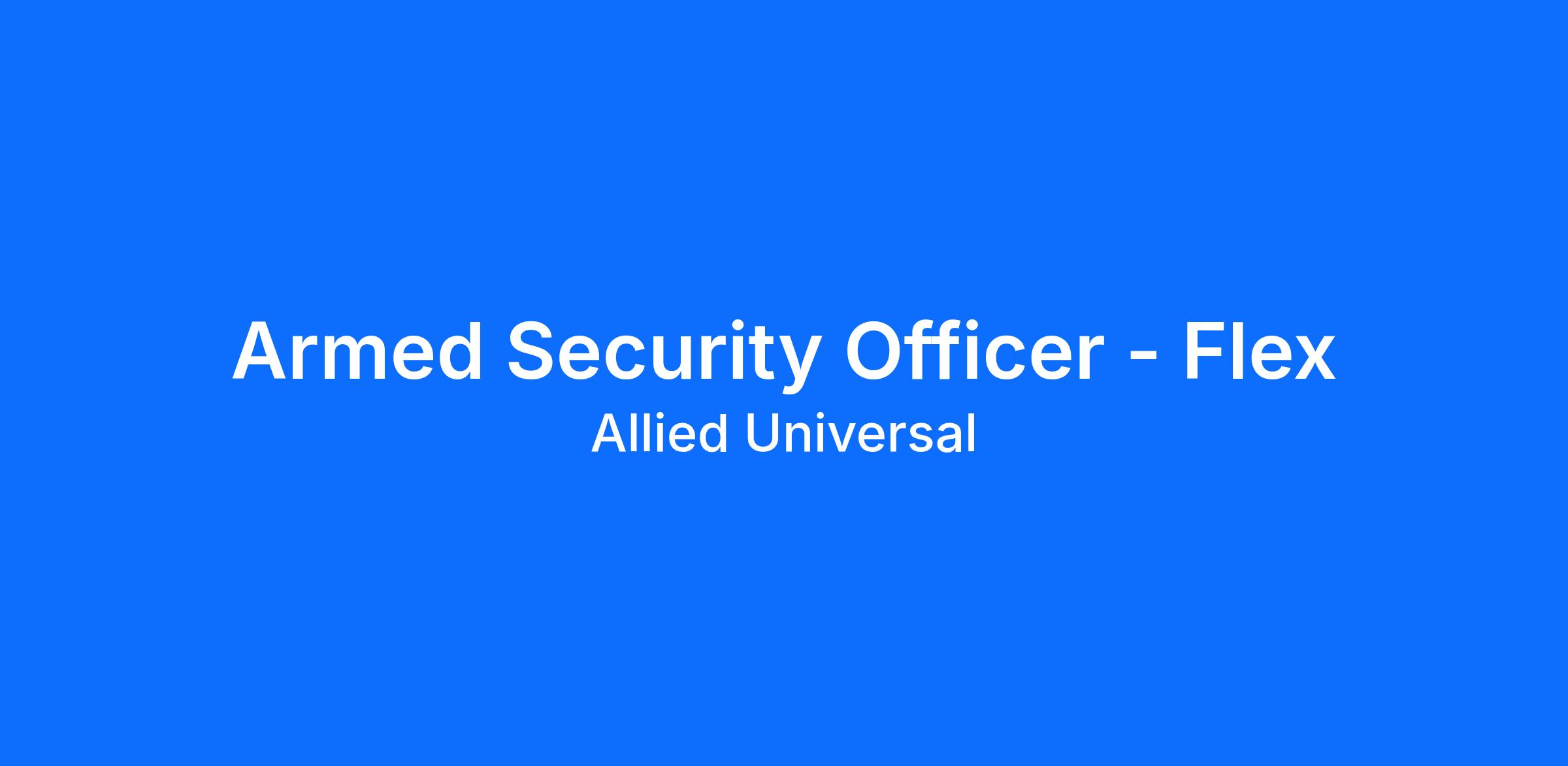 Allied Universal® is hiring a Security Professional Flex Officer. The Security Professional Flex Officer will serve and safeguard clients in a range of industries such as Healthcare, Education, Finance and more. Join a leading team where flexibility meets opportunity. As a Security Professional Flex Officer, you’ll use our exclusive shift-pickup platform to view and claim open shifts based on your availability - giving you the freedom to build a schedule that works for you, while gaining valuable site experience across various industries. Whether you're looking to supplement your income or take the first step toward a phenomenal career, this position offers unmatched access to hands-on experience and growth opportunities. The Security Professional Flex Officer may be called upon to work irregular shifts at times with little to no advance notice.