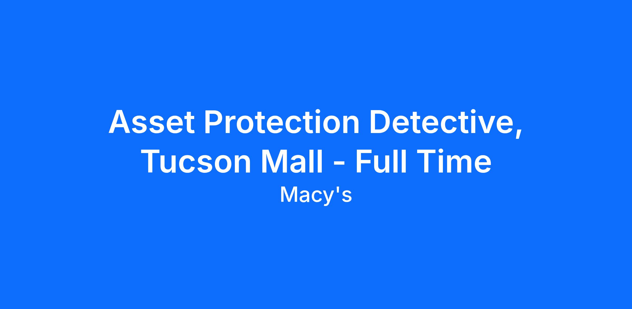 Our Asset Protection Security team uses advanced technology and analytics tools to reduce shortages and protect our bottom line. As an Asset Protection Detective, you will have the opportunity to receive expert training and develop your skills in this role. You will create and foster relationships with store teams and law enforcement agencies. Our goal is to protect company assets while maintaining a safe, customer-centric shopping environment.