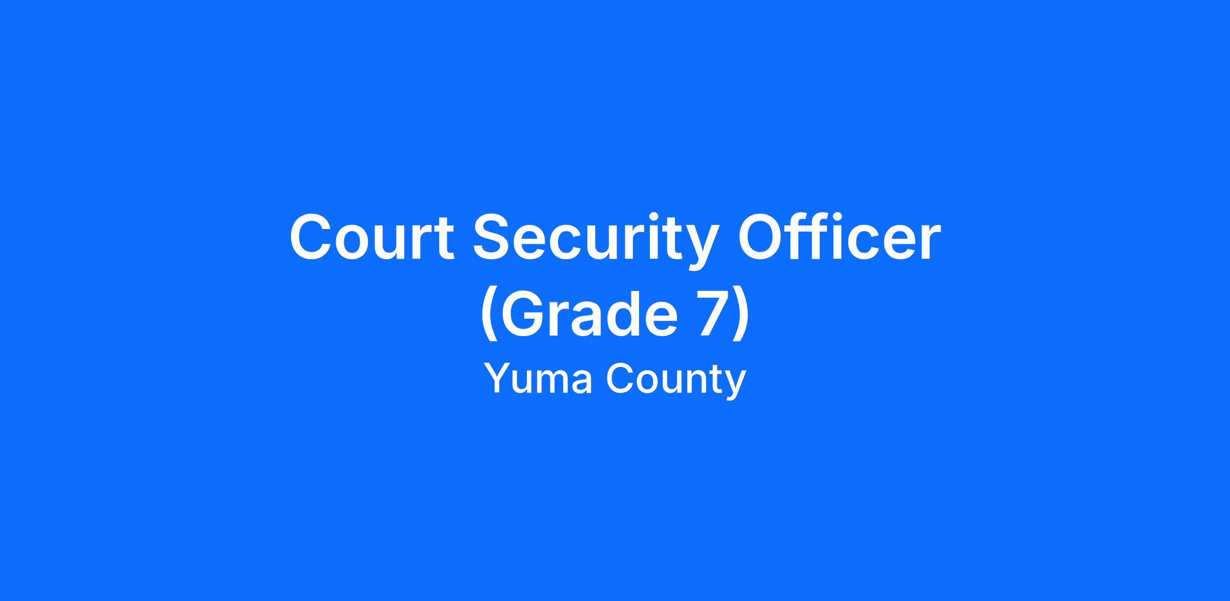 Under general supervision, maintains general security and safety of the Superior Court and Justice Courts in Yuma County; operates metal detectors and x-ray screening machines to detect concealed weapons and hazardous objects; prevents unauthorized access to restricted areas; patrols facilities as directed and monitors video cameras; provides customer service as required.