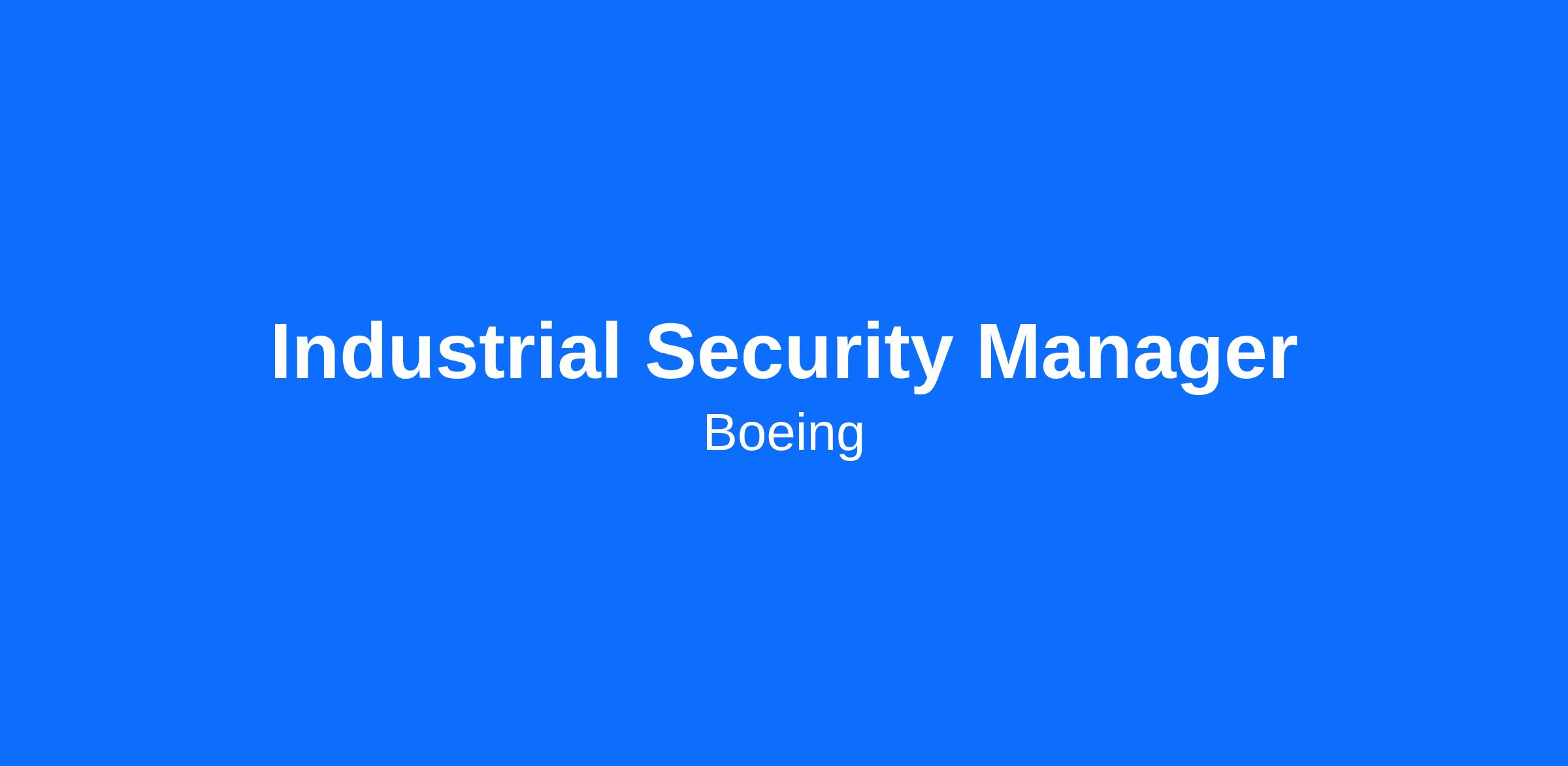 The Boeing CompanyThe Boeing Company is currently seeking an Industrial Security Manager to join the team in Mesa, AZ; El Segundo, CA; Hazelwood, MO; Huntington Beach, CA; Kent, WA; Oklahoma City, OK; Ridley Park, PA; San Antonio, TX; Seal Beach, CA; or Tukwila, WA.