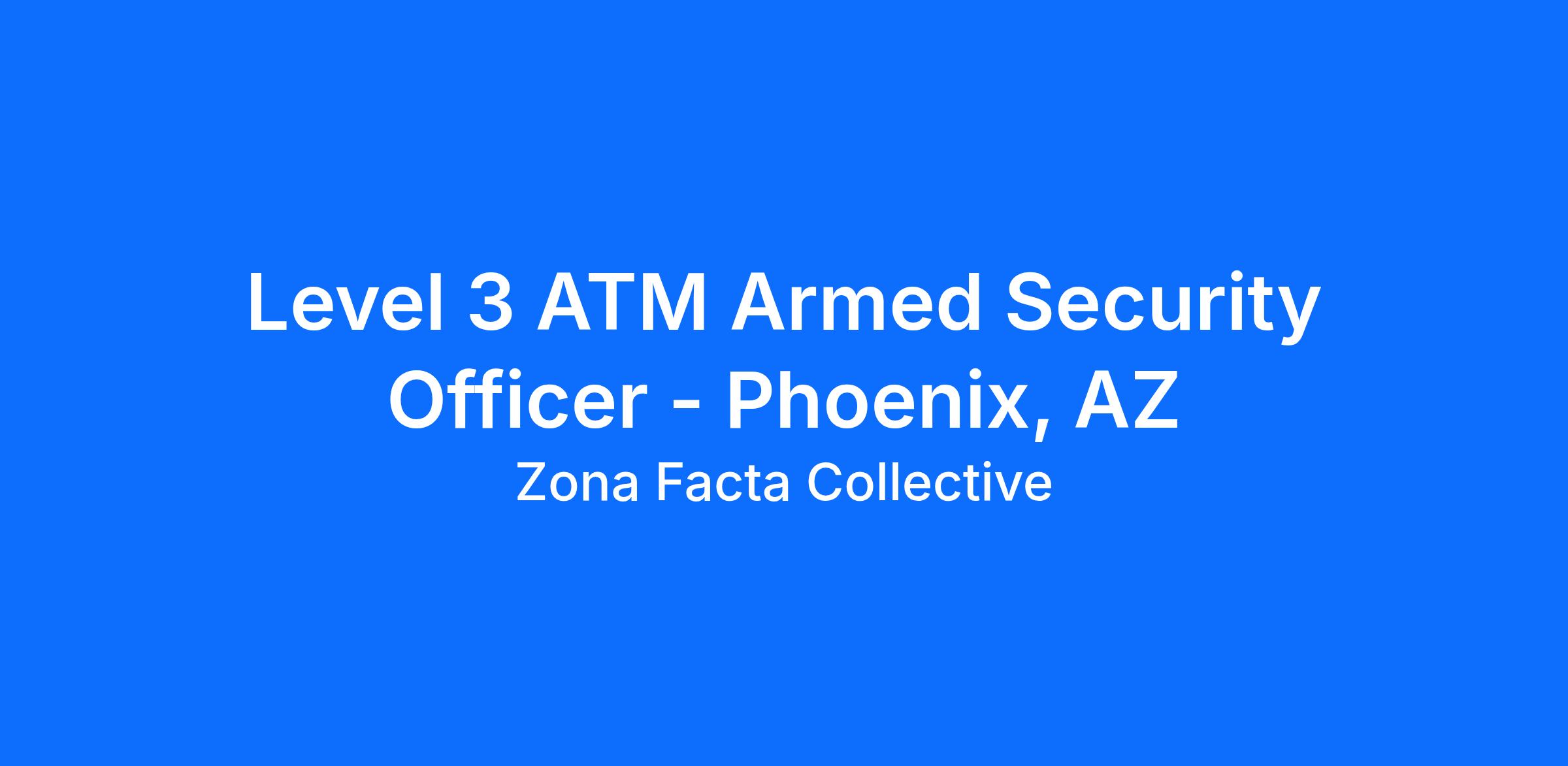 Zona Facta Risk Mitigation Services is actively seeking highly qualified and experienced security guards for security contracts across Phoenix, Arizona. Currently, we have an opening for an Armed Protective Agent to support our ATM Technician Security Contract. This role involves providing armed protection to ATM technicians while they perform their duties at various locations across Phoenix, Arizona.