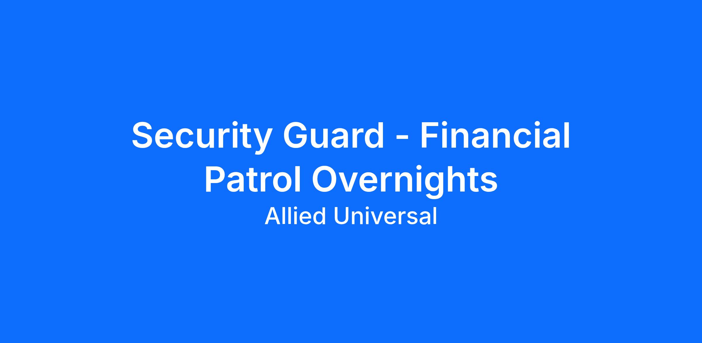 As a Security Guard - Financial Patrol Overnights in Tempe, AZ, you will serve and safeguard clients in a range of industries such as Financial Institutions, and more. As an Allied Universal Security Officer at a financial institution location, you will conduct routine unarmed patrols, maintain a visible presence to help reduce security-related incidents, and support access control and incident reporting. You will deliver outstanding customer service and clear communication with staff and visitors, while working as part of an agile, reliable, and innovative team that puts people first and acts with integrity.