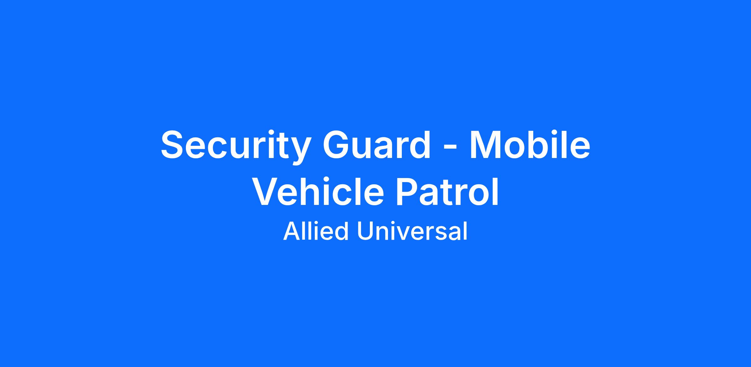 Allied Universal® is an Equal Opportunity Employer. All qualified applicants will receive consideration for employment without regard to race/ethnicity, age, color, religion, sex, sexual orientation, gender identity, national origin, genetic information, disability, protected veteran status or relationship/association with a protected veteran, or any other basis or characteristic protected by law. For more information: www.aus.com.