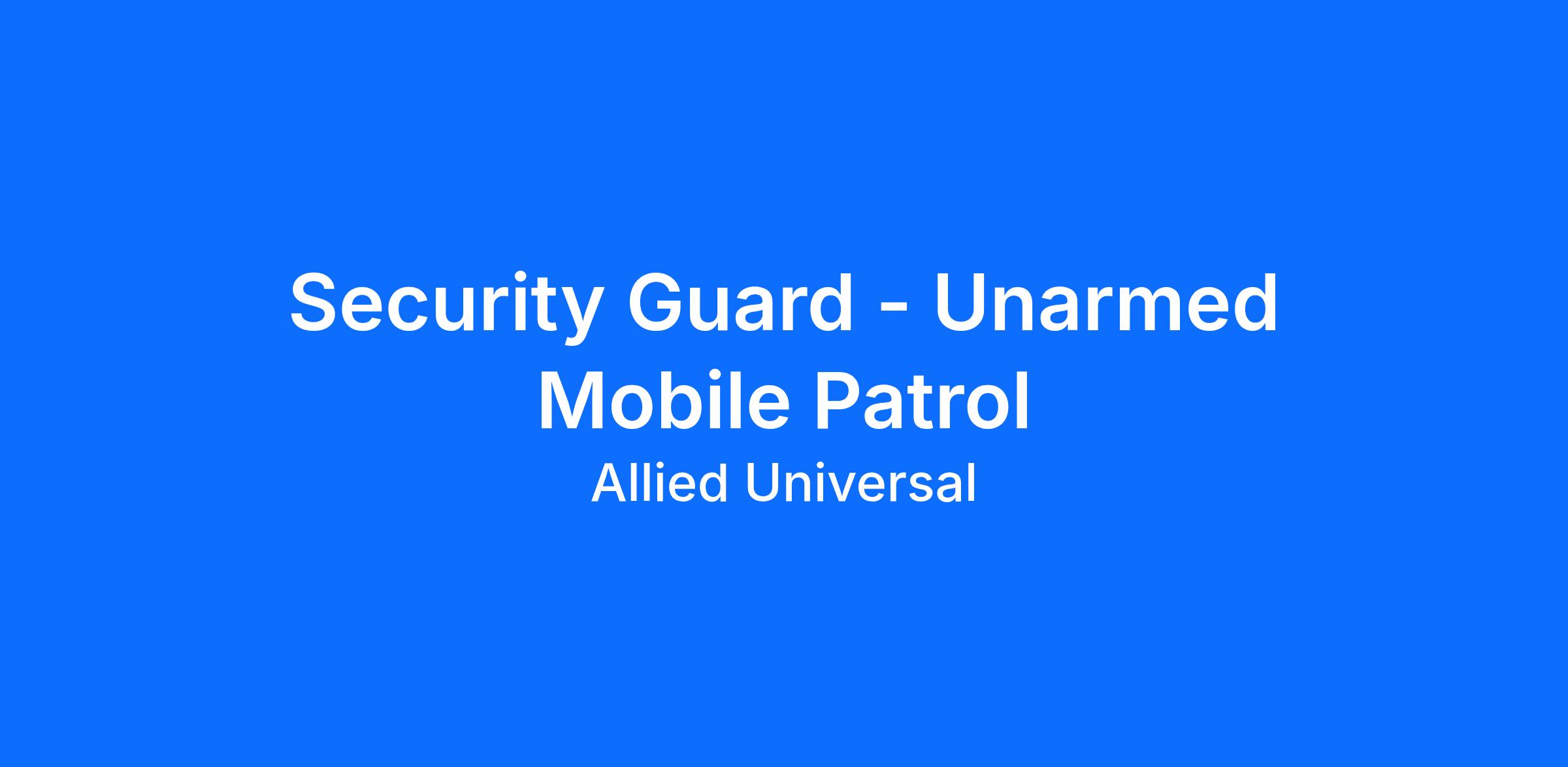 Allied Universal® is an Equal Opportunity Employer. All qualified applicants will receive consideration for employment without regard to race/ethnicity, age, color, religion, sex, sexual orientation, gender identity, national origin, genetic information, disability, protected veteran status or relationship/association with a protected veteran, or any other basis or characteristic protected by law. For more information: www.aus.com.