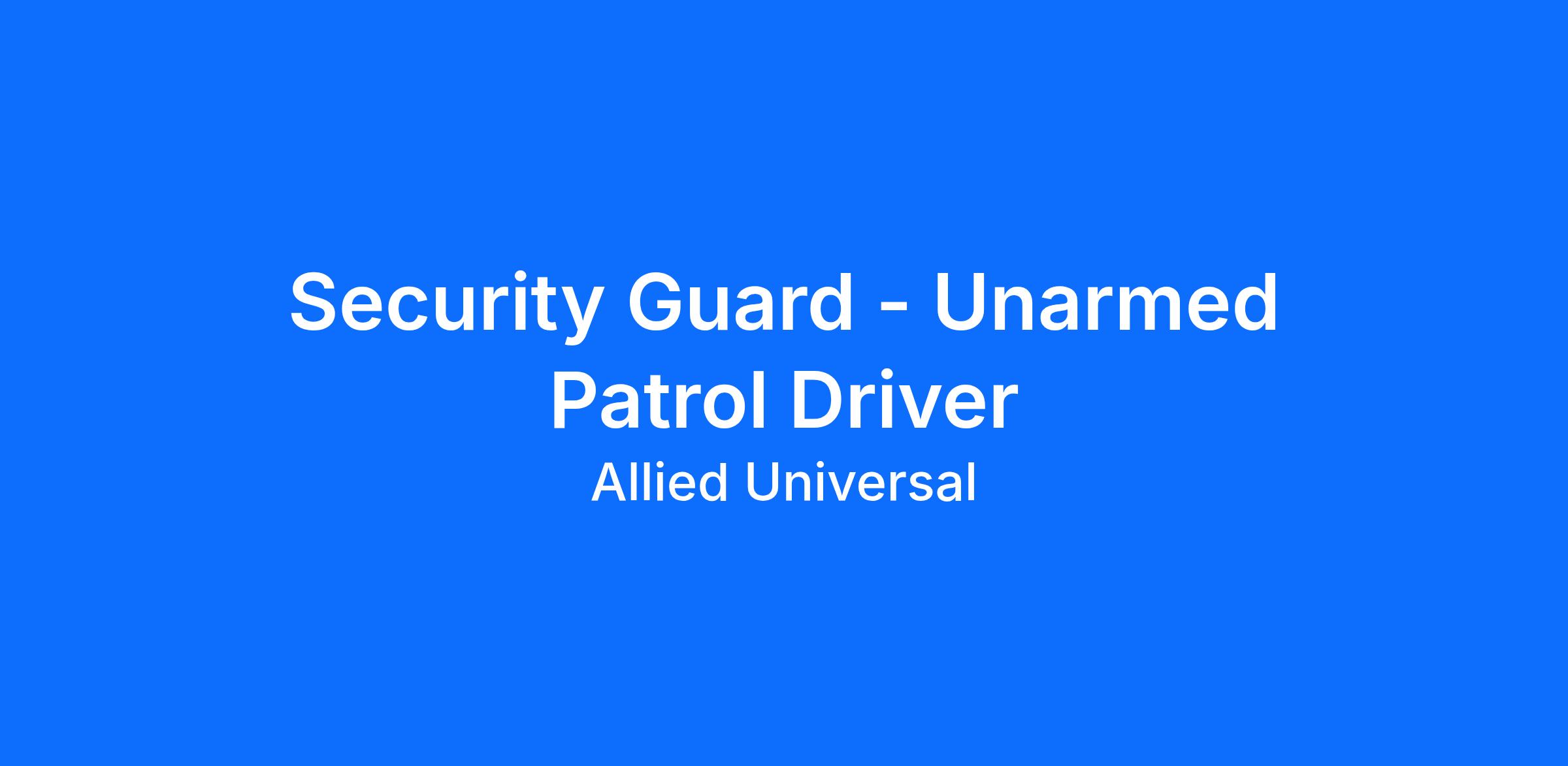 As a Security Guard - Unarmed Patrol Driver in Phoenix, AZ, you will serve and safeguard clients in a range of industries such as Education, and more. As an unarmed, driving patrol officer at an education location, you will complete vehicle and foot rounds, support access control, and respond to calls for assistance while remaining highly visible to help to deter security-related incidents. You will document activity using a computer and/or tablet and deliver strong customer service to staff, students, and visitors. Join Allied Universal, where agility, reliability, innovation, teamwork, and integrity guide how we serve.