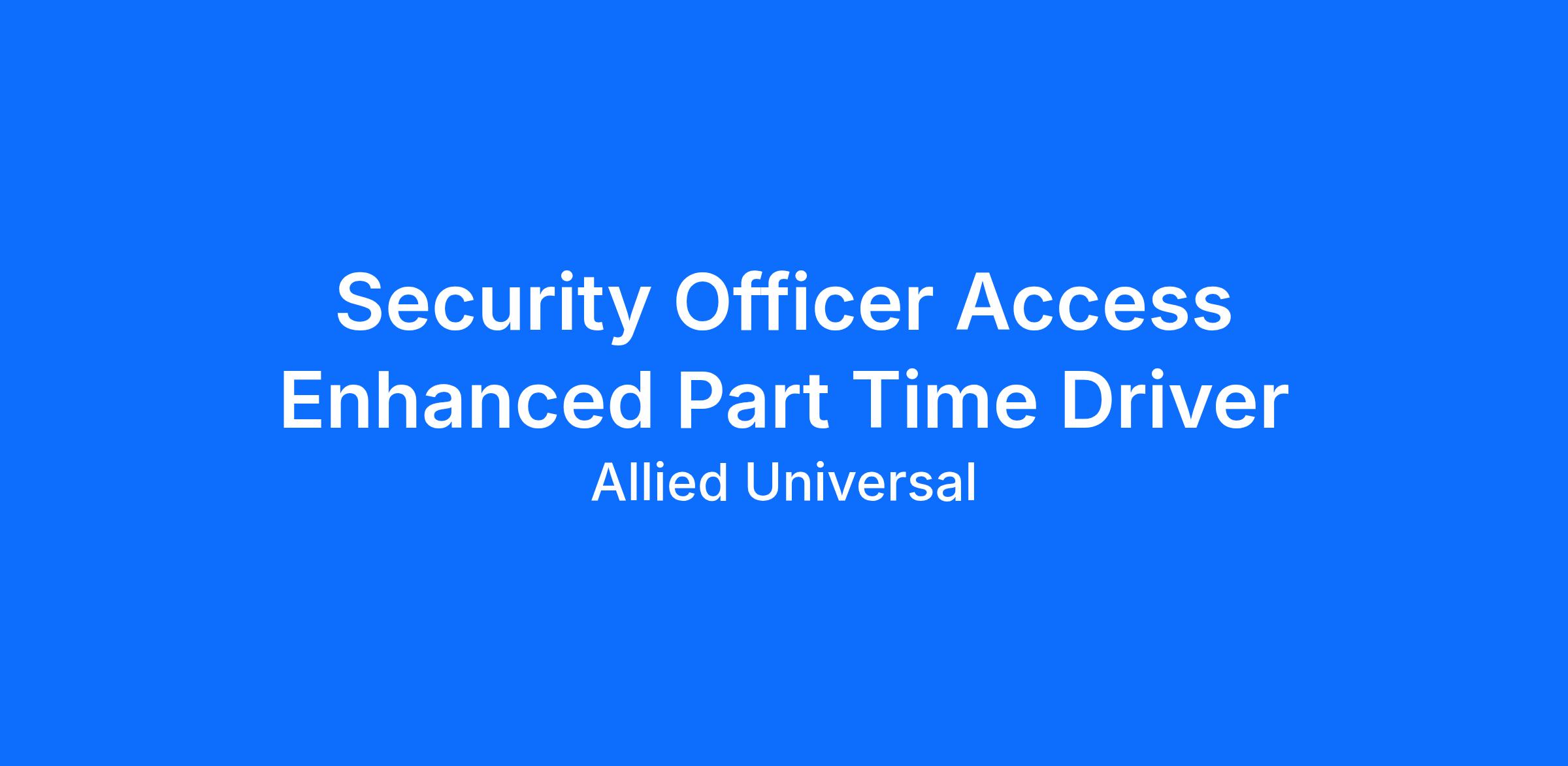 As a Security Officer Access Enhanced Part Time Driver in MESA, AZ, this role is designed to provide reliable, consistent hours at an assigned site with the flexibility for you to earn more by picking-up additional shifts when it works for you.