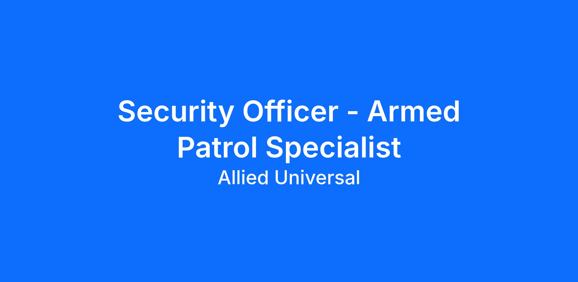 As a Security Officer - Armed Patrol Specialist in Mesa, AZ, you will serve and safeguard clients in a range of industries such as Aero/Defense, and more. Join Allied Universal at a leading aero and defense location as an Armed Patrol Officer. You will conduct routine foot and/or vehicle patrols, stay highly visible, and respond to incidents while delivering clear communication and customer service to employees and visitors. This post requires an armed guard card or license. Bring integrity and teamwork to a caring, agile, and innovative culture where your work supports day to day security-related operations.