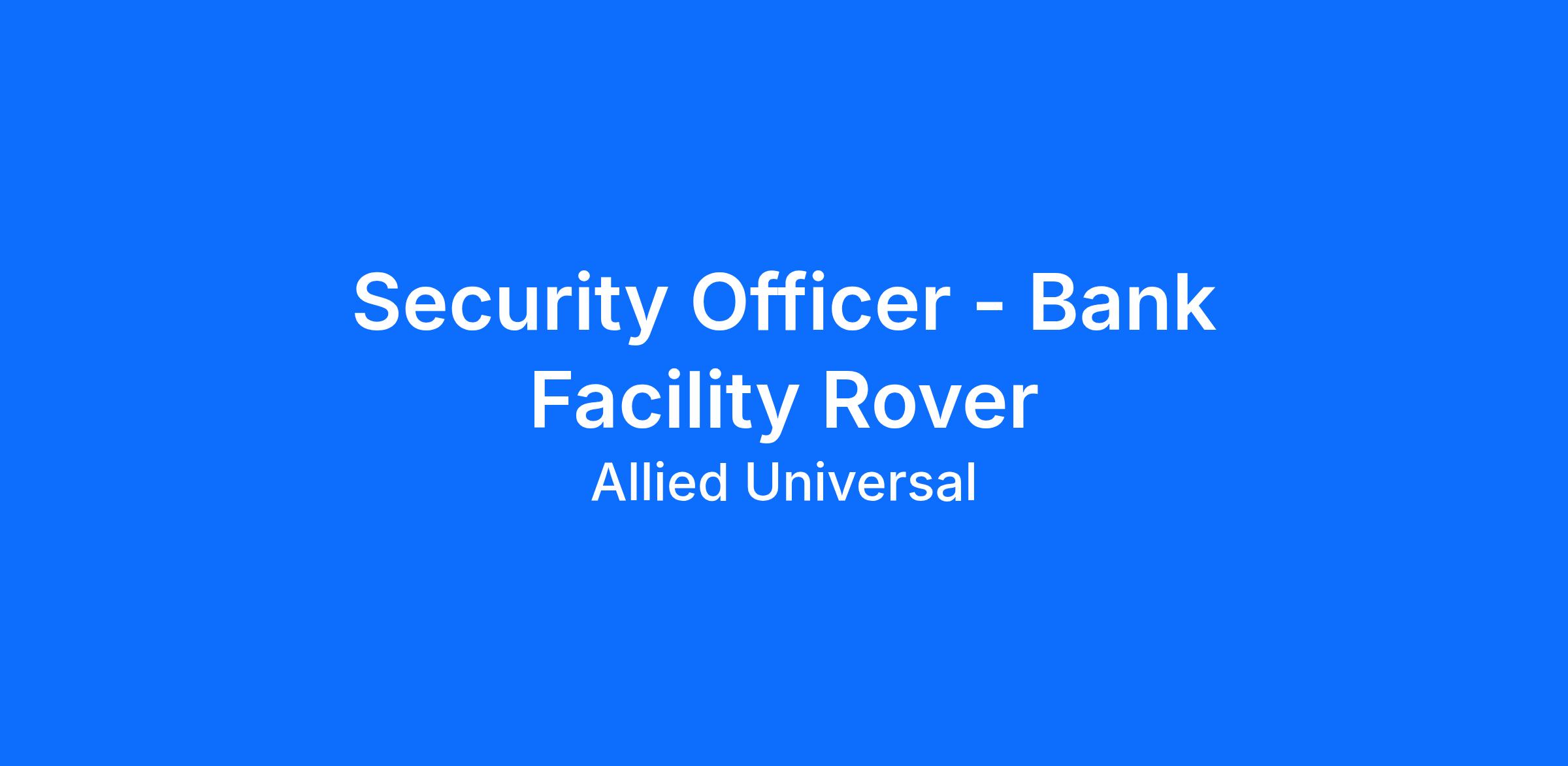 As a Security Officer - Bank Facility Rover in Tempe, AZ, you will serve and safeguard clients in a range of industries such as Financial Institutions, and more. As a Patrol Unarmed Officer with Allied Universal at a leading financial institution, you will monitor and patrol assigned locations, helping to deter security-related incidents and providing a visible presence. You will interact with employees and visitors, deliver outstanding customer service, and communicate clearly while upholding our values of teamwork, integrity, and innovation. Join a caring company that puts people first and make a meaningful impact in a dynamic environment.