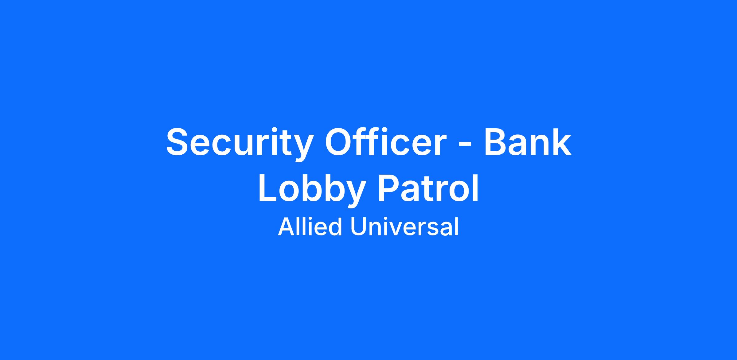 Allied Universal® is an Equal Opportunity Employer. All qualified applicants will receive consideration for employment without regard to race/ethnicity, age, color, religion, sex, sexual orientation, gender identity, national origin, genetic information, disability, protected veteran status or relationship/association with a protected veteran, or any other basis or characteristic protected by law. For more information: www.aus.com.