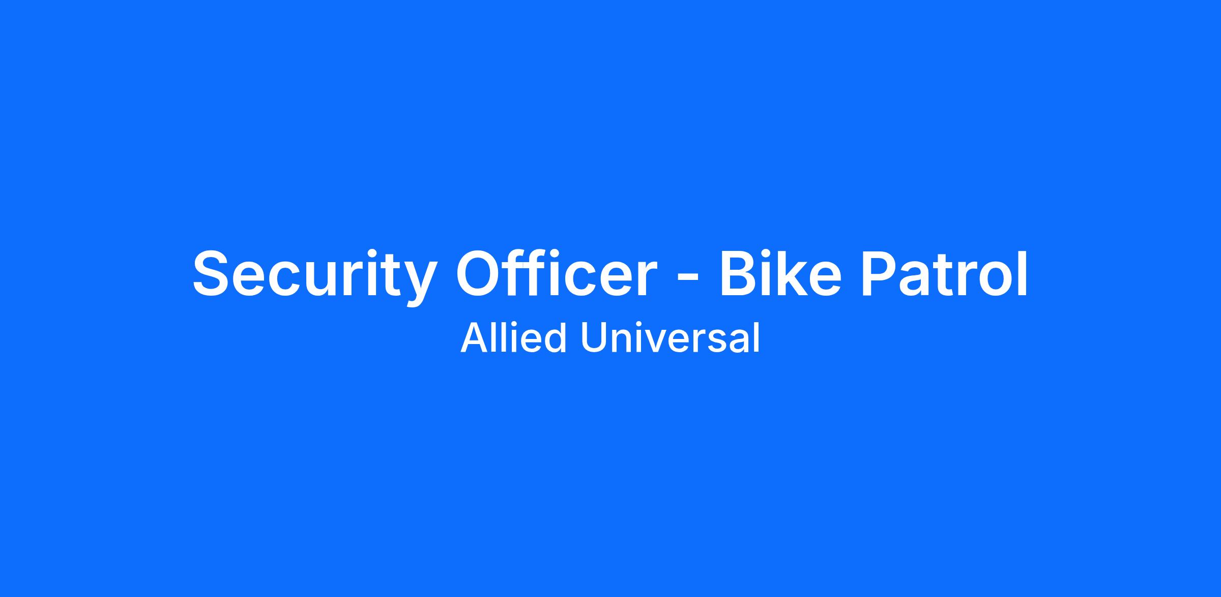 Allied Universal® is an Equal Opportunity Employer. All qualified applicants will receive consideration for employment without regard to race/ethnicity, age, color, religion, sex, sexual orientation, gender identity, national origin, genetic information, disability, protected veteran status or relationship/association with a protected veteran, or any other basis or characteristic protected by law. For more information: www.aus.com.