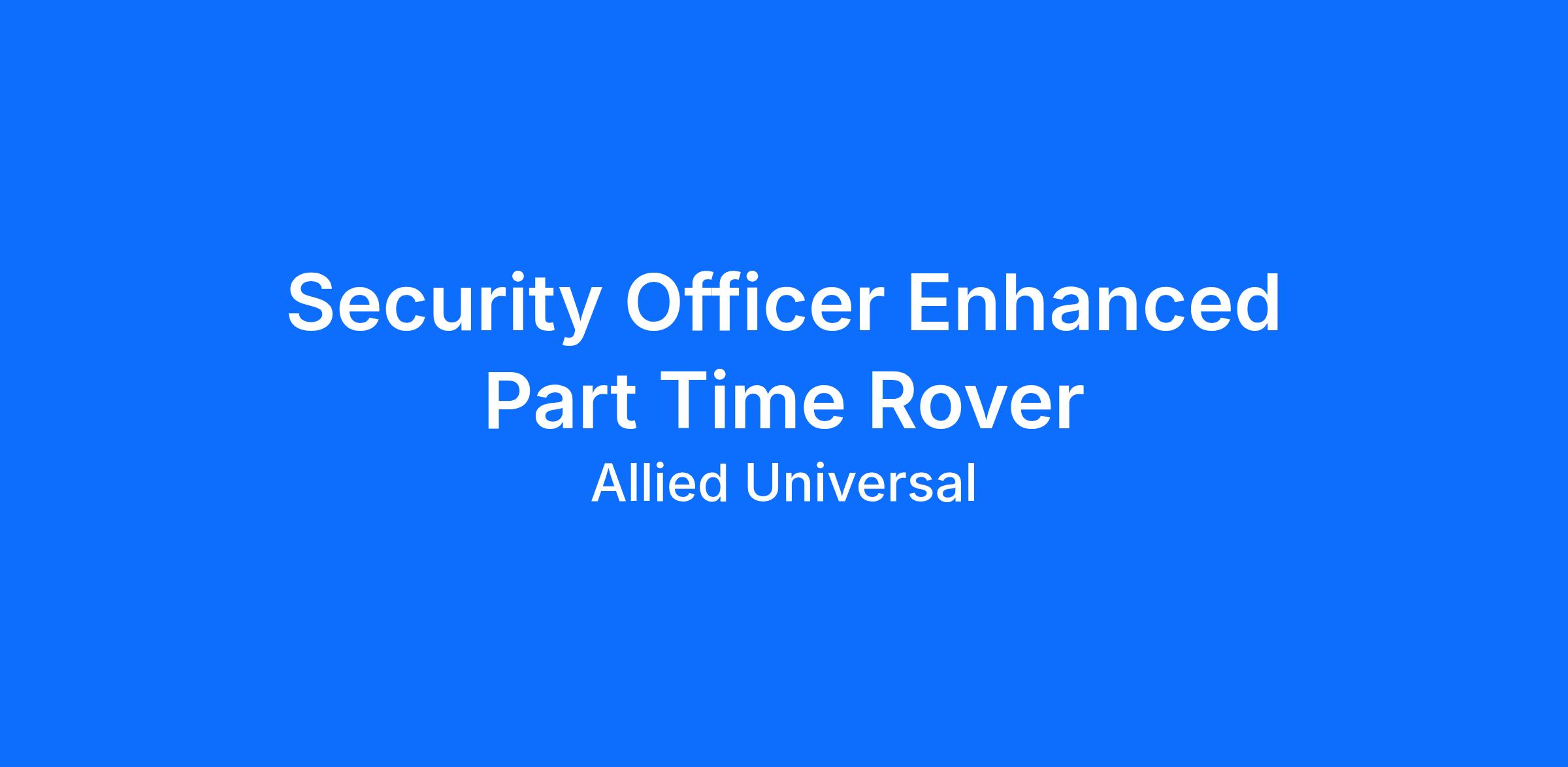 As a Security Officer Enhanced Part Time Rover in Tucson, AZ, this role is designed to provide reliable, consistent hours at an assigned site with the flexibility for you to earn more by picking-up additional shifts when it works for you.