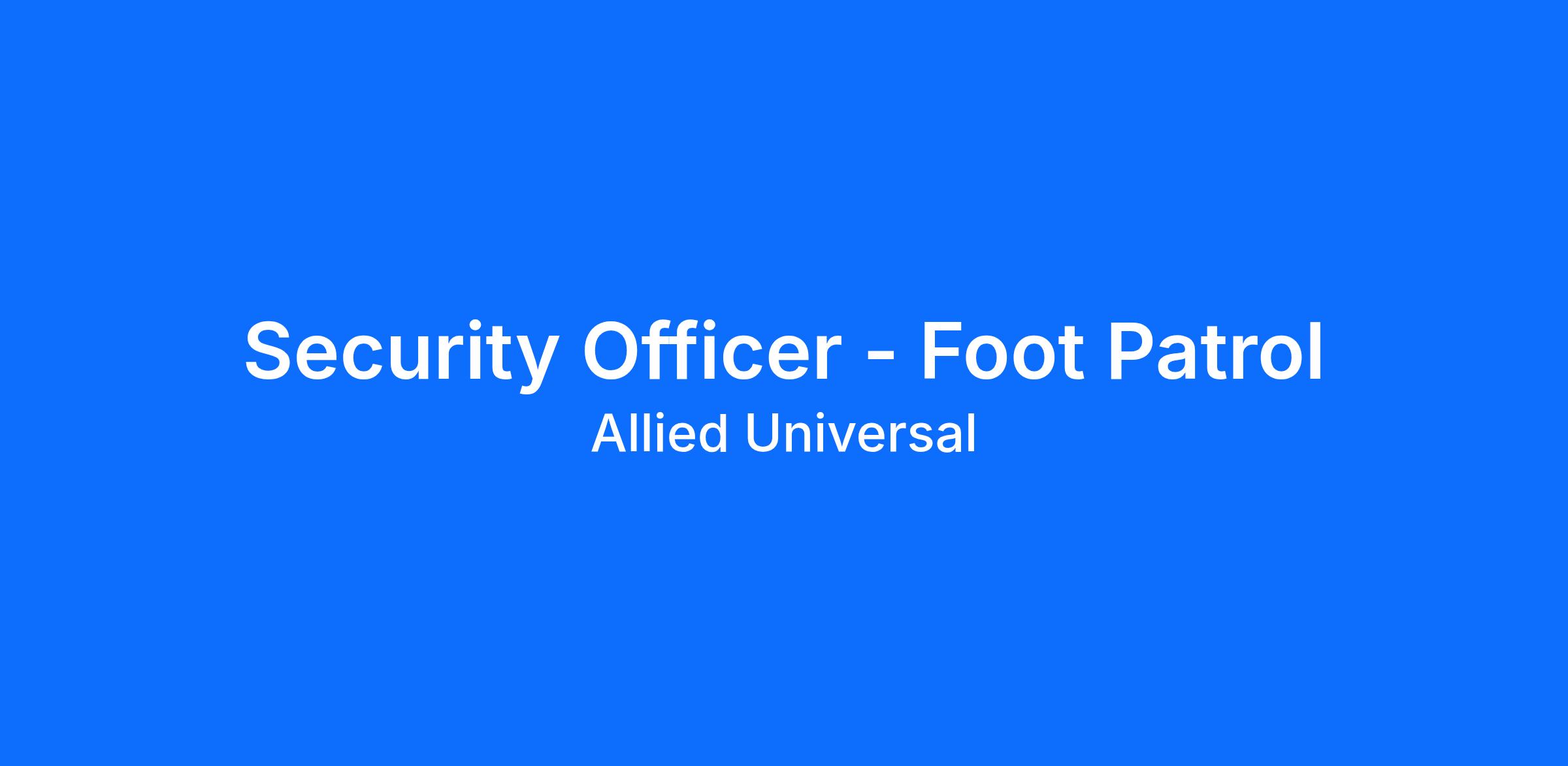 Allied Universal® is an Equal Opportunity Employer. All qualified applicants will receive consideration for employment without regard to race/ethnicity, age, color, religion, sex, sexual orientation, gender identity, national origin, genetic information, disability, protected veteran status or relationship/association with a protected veteran, or any other basis or characteristic protected by law. For more information: www.aus.com.