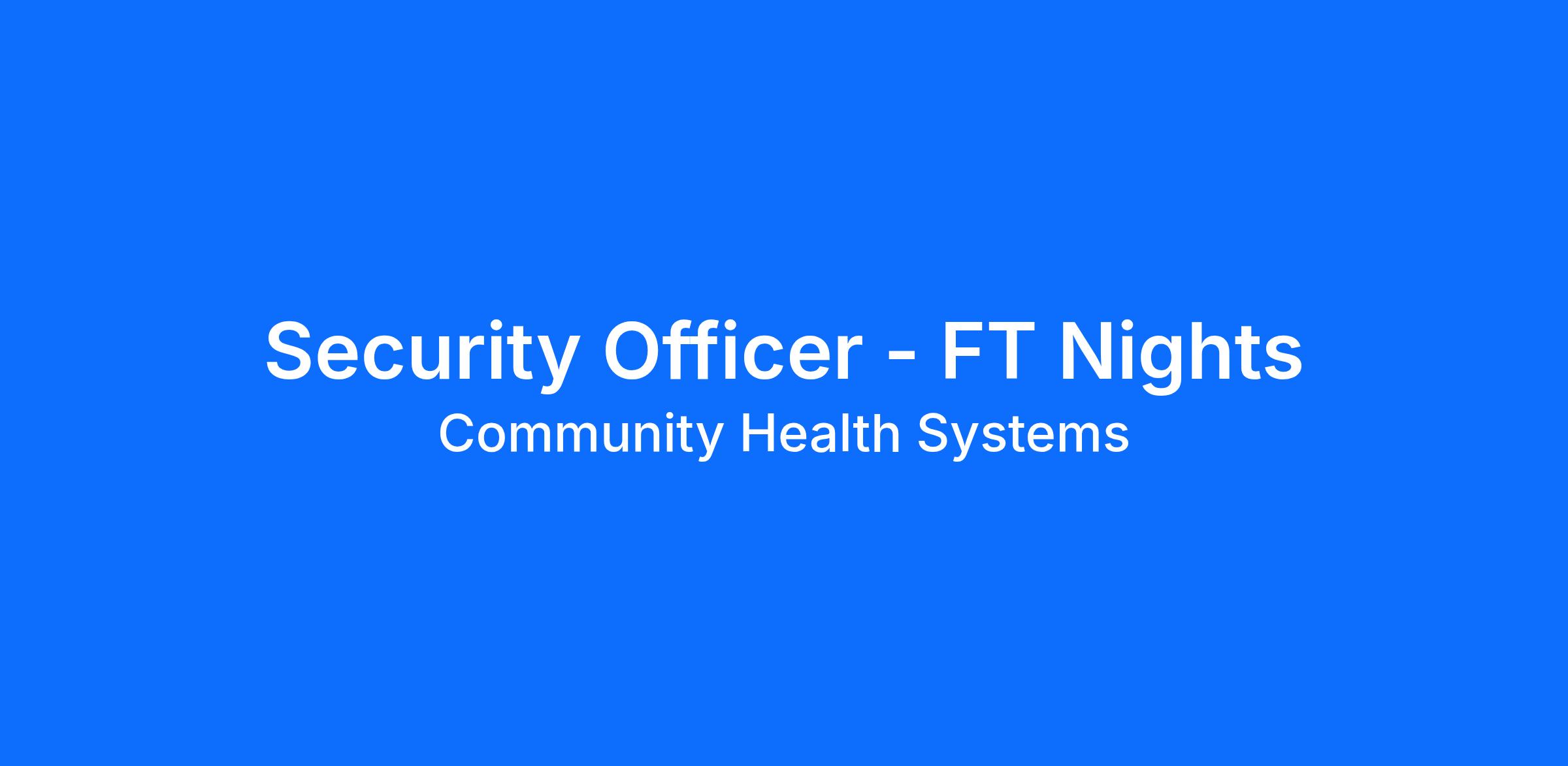 DescriptionSeeking a full-time Security Officer to support our Security department at Houghton Hospital, located on 2200 S Houghton Rd, Tucson AZ 85748.