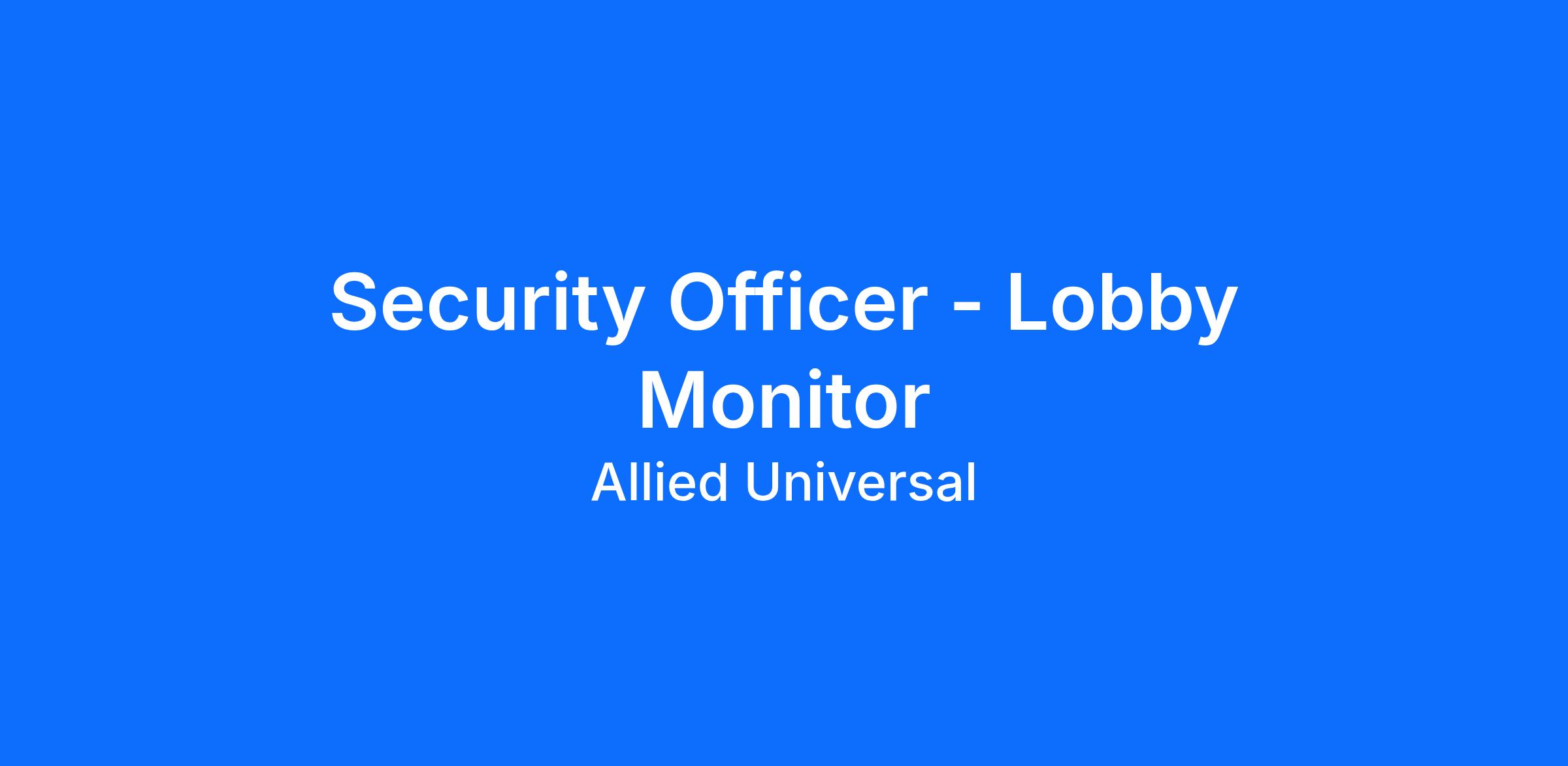 As a Security Officer - Part-Time Lobby Monitor in Tempe, AZ, you will serve and safeguard clients in a range of industries such as Tech/Media/Telecom, and more. Join a leading team where flexibility meets opportunity. As a Part-Time Security Officer, you can build a schedule that works for you and explore new roles using our Claim a Shift platform. Learn more: aus.com/earnmore. As a Front Desk Officer at a fast-paced tech and telecom location, you will be the first point of contact, welcoming employees and visitors, managing access control, verifying credentials, and supporting visitor registration and badge handling. You will monitor lobby activity and cameras, respond to incidents with clear communication, and document activity with attention to detail. At Allied Universal, you will bring agility, reliability, innovation, teamwork, and integrity to every security-related interaction.