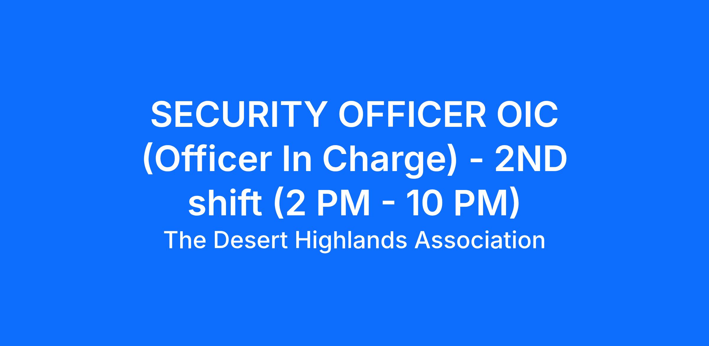 Desert Highlands Golf Club is seeking a Security Officer for 2nd Shift (2:00 PM – 10:00 PM) to join our Security Team. This is a full-time position, 40 hours per week, with a 5-day work schedule and two consecutive days off. The ideal candidate will have a can-do attitude and strong customer service skills. Two days per week, this role will serve as the Officer in Charge, providing on-shift leadership support and ensuring smooth security operations during the shift.