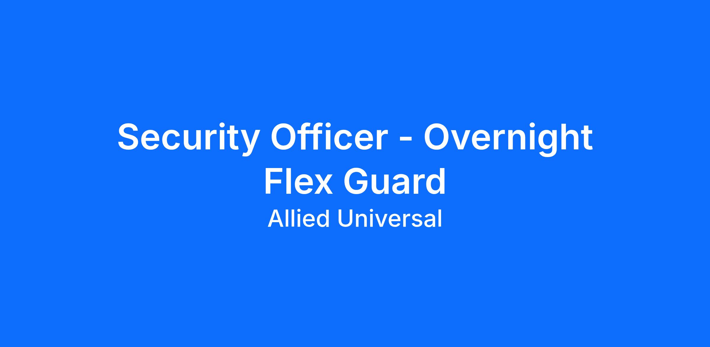 Allied Universal® is an Equal Opportunity Employer. All qualified applicants will receive consideration for employment without regard to race/ethnicity, age, color, religion, sex, sexual orientation, gender identity, national origin, genetic information, disability, protected veteran status or relationship/association with a protected veteran, or any other basis or characteristic protected by law. For more information: www.aus.com.