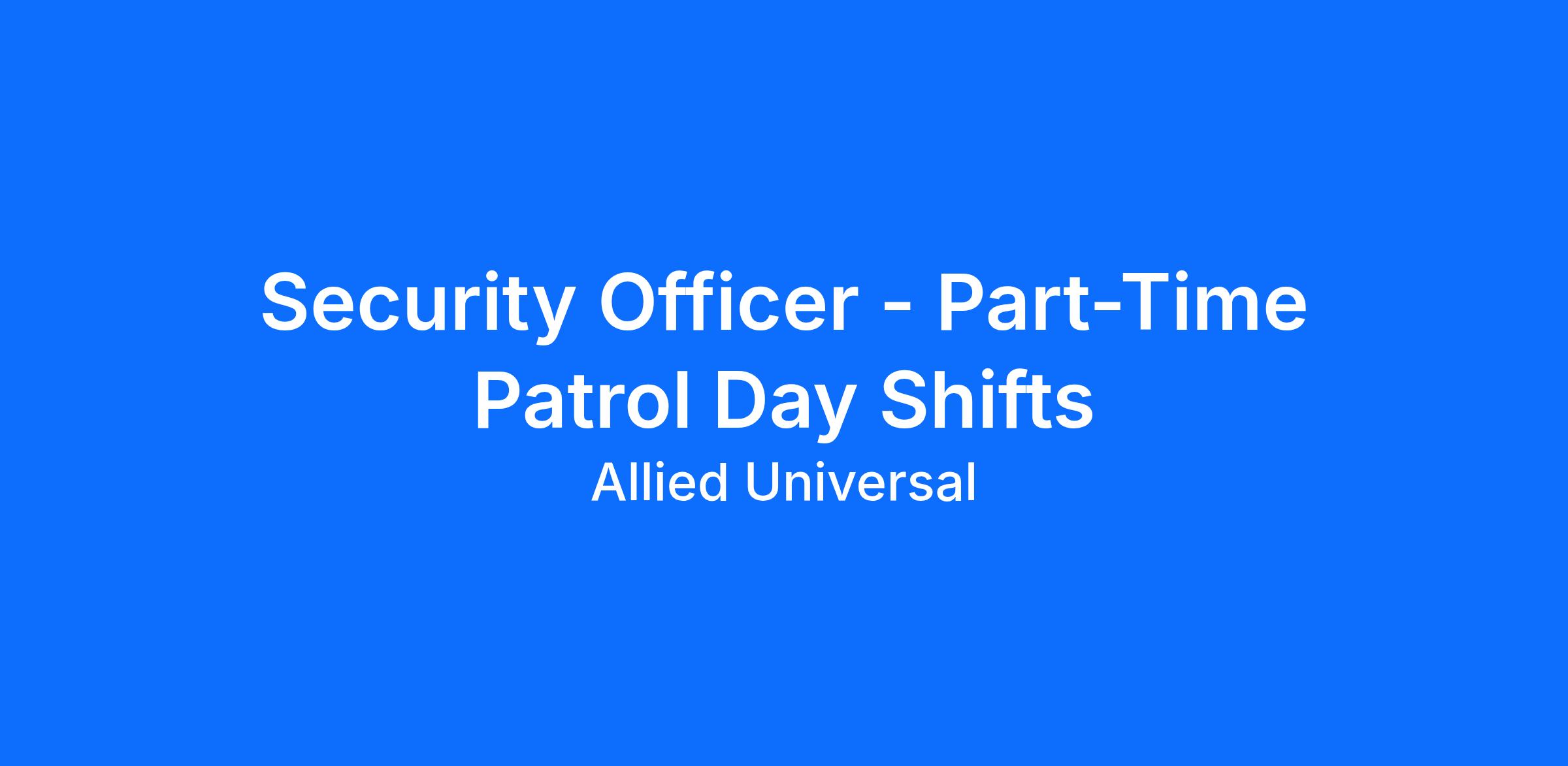 As a Security Officer - Part-Time Patrol Day Shifts in Nogales, AZ, you will serve and safeguard clients in a range of industries such as Manufacturing & Industrial, and more. Join a leading team where flexibility meets opportunity. As a Part-Time Security Officer, you can build a schedule that works for you and explore new roles using our Claim a Shift platform. Learn more: aus.com/earnmore. Join Allied Universal as an unarmed patrol officer at a busy manufacturing and industrial location, where you will monitor and patrol assigned areas, complete routine rounds, remain highly visible to help to deter security-related incidents, and support access control and incident reporting. You will deliver strong customer service and clear communication while working with site teams, bringing an agile, reliable, and innovative mindset, putting people first, and acting with integrity through teamwork.