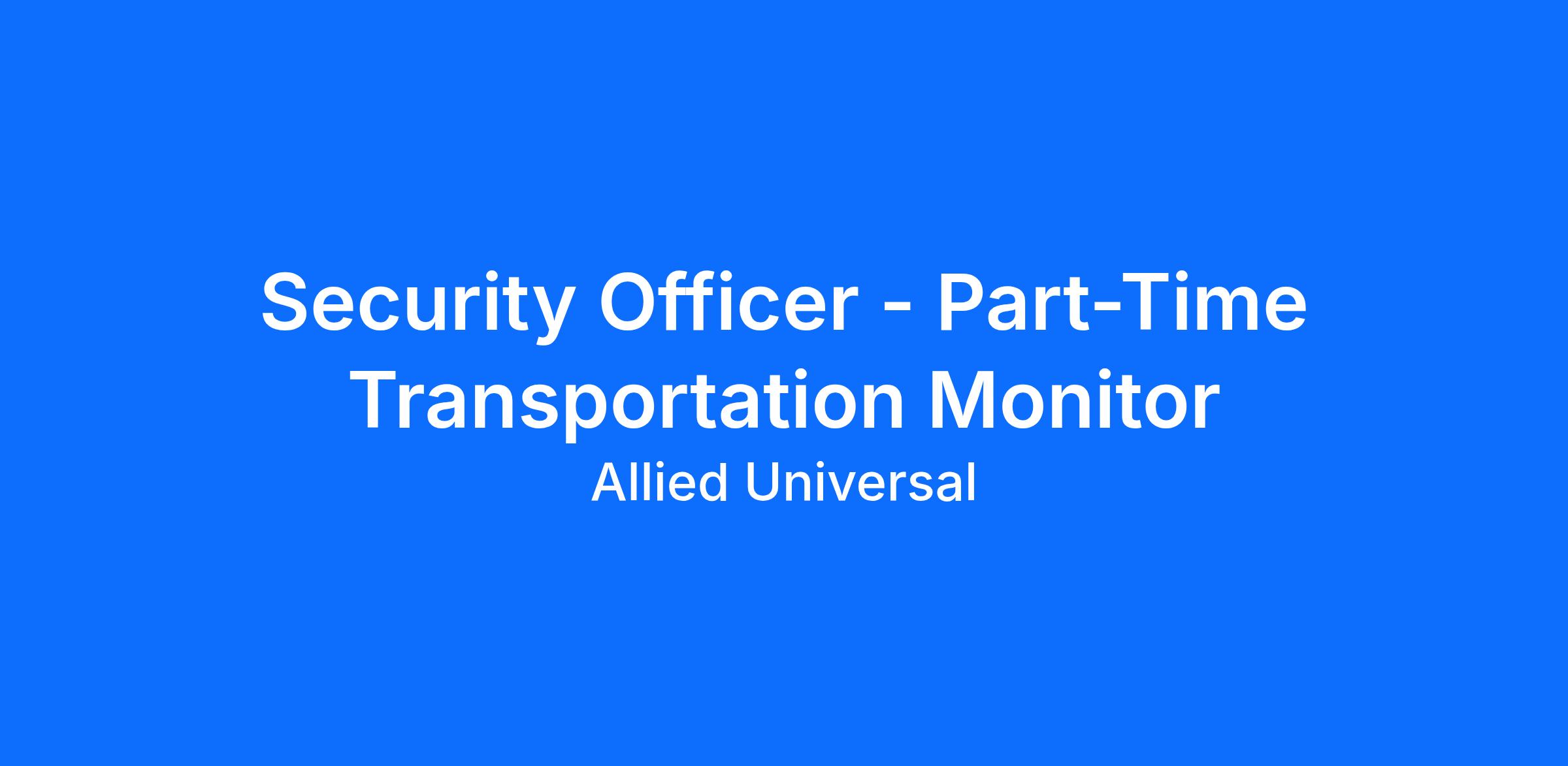 As a Security Officer - Part-Time Transportation Monitor in Phoenix, AZ, you will serve and safeguard clients in a range of industries such as Government, and more. Join a leading team where flexibility meets opportunity. As a Part-Time Security Officer, you can build a schedule that works for you and explore new roles using our Claim a Shift platform. Learn more: aus.com/earnmore. Join Allied Universal at a government location where you will monitor and patrol assigned areas, conduct routine rounds, and maintain a visible presence that can help to reduce security-related incidents. You will support access control and visitor badging as needed, document activity, and communicate clearly with staff and the public while delivering strong customer service. Bring integrity, teamwork, and an agile mindset to a role where reliability and innovation matter.