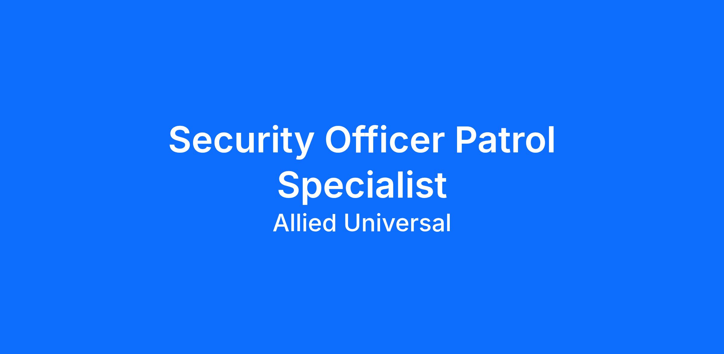 Allied Universal® is an Equal Opportunity Employer. All qualified applicants will receive consideration for employment without regard to race/ethnicity, age, color, religion, sex, sexual orientation, gender identity, national origin, genetic information, disability, protected veteran status or relationship/association with a protected veteran, or any other basis or characteristic protected by law. For more information: www.aus.com.