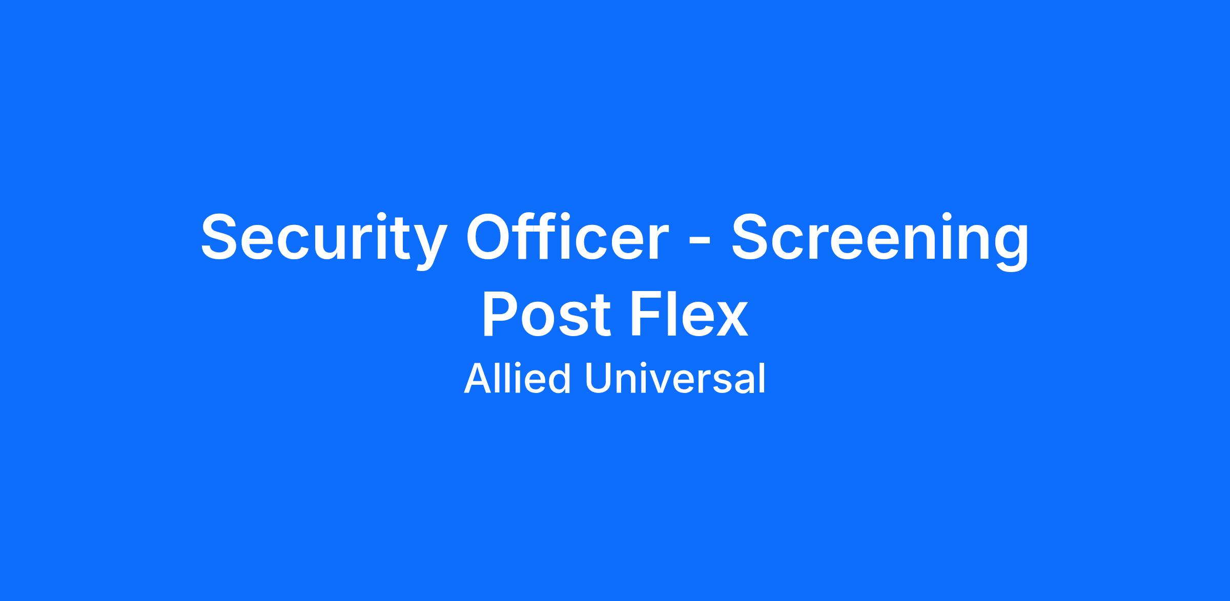 As a Security Officer - Flex Checkpoint Screener in Scottsdale, AZ, you will serve and safeguard clients in a range of industries such as Financial Institutions, and more. Join a leading team where flexibility meets opportunity. As a Flex Part-Time Security Officer, you can build a schedule that works for you and explore new roles using our Claim a Shift platform. Learn more: aus.com/earnmore. As a Screener with Allied Universal at a financial services location, you will greet visitors, verify identification, manage access control and badging, and support a professional entry experience. You will complete routine patrols, stay visible to help reduce security-related incidents, and document observations using a computer and/or tablet. Bring your customer service skills to a team that is agile, reliable, innovative, and people first, always acting with integrity.