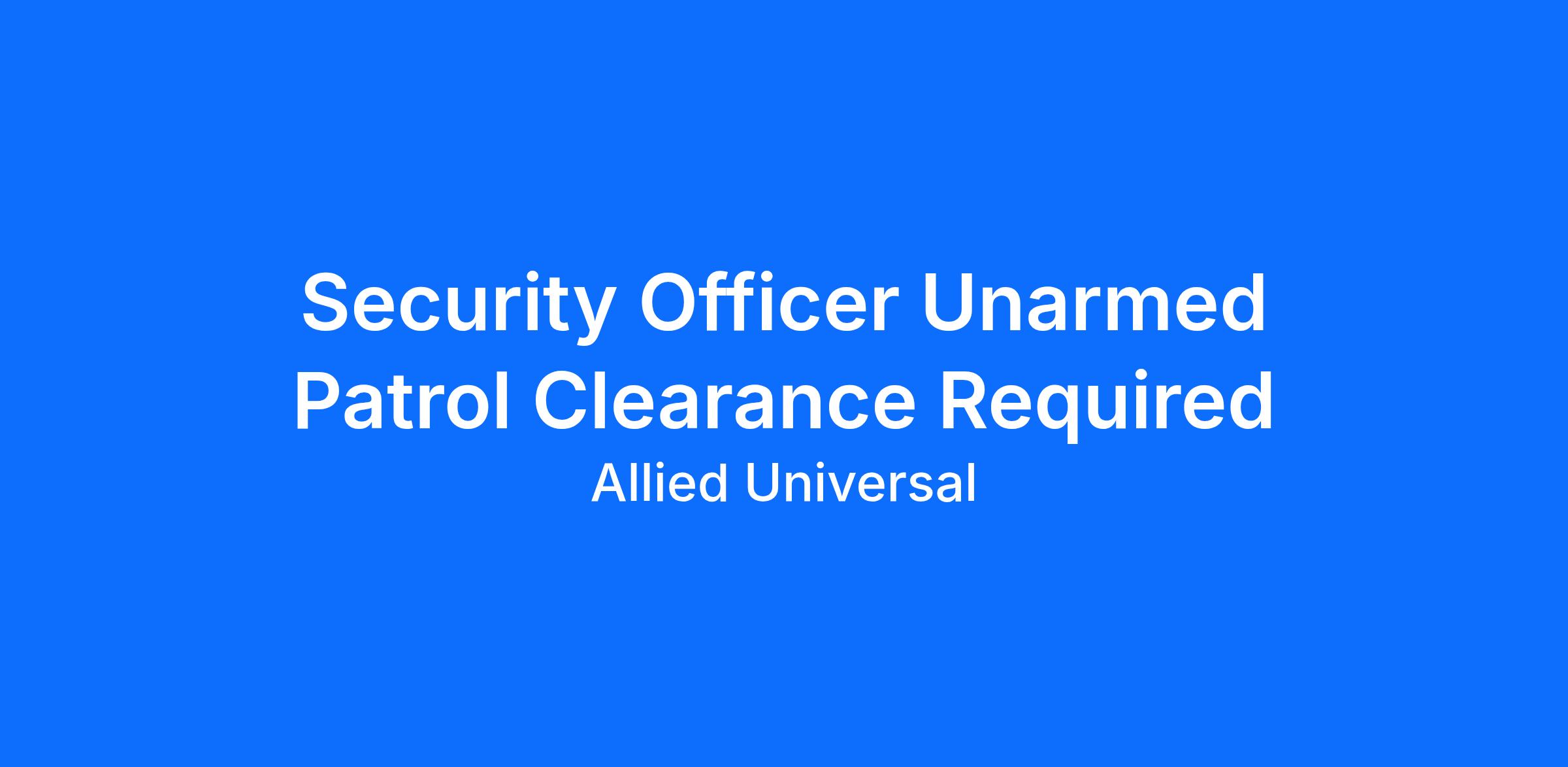 Allied Universal® is an Equal Opportunity Employer. All qualified applicants will receive consideration for employment without regard to race/ethnicity, age, color, religion, sex, sexual orientation, gender identity, national origin, genetic information, disability, protected veteran status or relationship/association with a protected veteran, or any other basis or characteristic protected by law. For more information: www.aus.com.