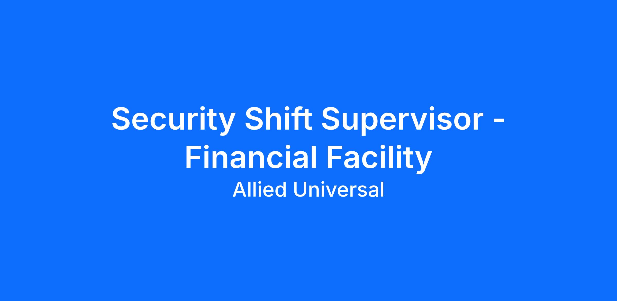Allied Universal Services is currently searching for a Professional Security Shift Supervisor.
