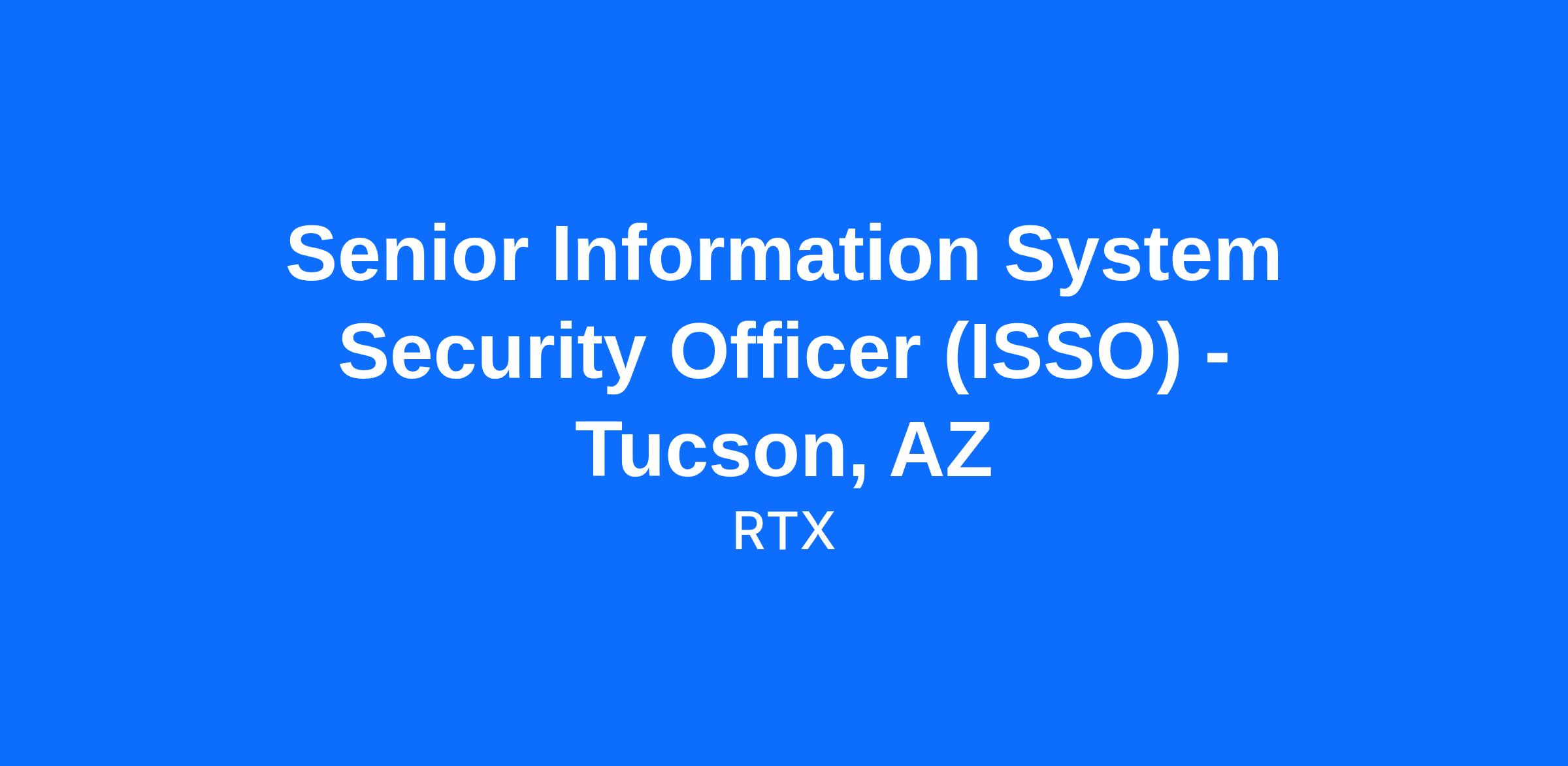 Our cybersecurity team is seeking a Senior Information Systems Security Officer (ISSO) to support our team 100% onsite at our facility in Tucson, Arizona. The successful candidate will interface with the Information Systems Security Manager (ISSM) to ensure adherence with NIST Special Publications, customer directives, and company policies as applicable all NISPOM Chapter 8, DAAPM, JSIG policies.