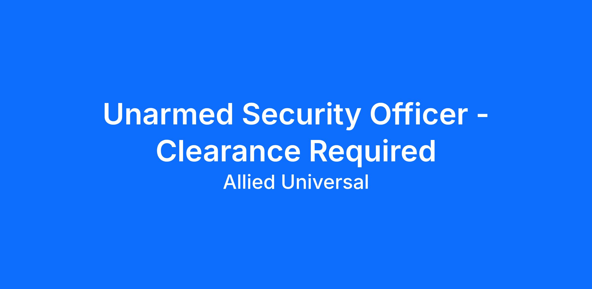 Allied Universal® is hiring a Security Officer - Cleared (Clearance Required - Unarmed). At Allied Universal, a Cleared Security Officer is entrusted with sensitive information and given the responsibility to protect classified information and personnel. As a Cleared Security Officer, you'll receive specialized training in site-specific security protocols associated with your clearance level, allowing for skill development and professional growth in the security field.